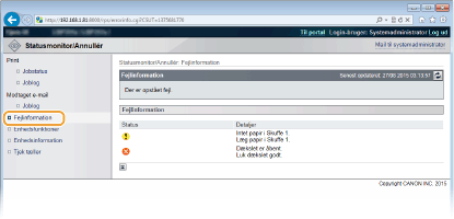 Tag behørig handling i henhold til meddelelsen på maskinens display. Når der vises en fejlmeddelelse