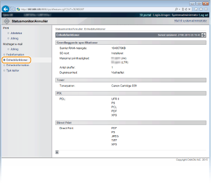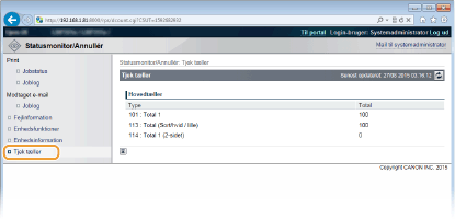 Status for alle udskrivningsjob vises uanset indstillingerne for administration af afdelings-id.