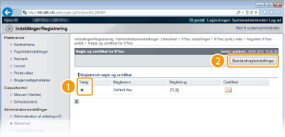 Vælg det nøglepar, du vil bruge, og klik på [Standardnøgleindstillinger].