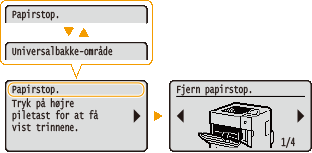 for at få vist enkle løsninger. Hvis du ikke forstår procedurerne på skærmen, skal du se følgende afsnit for at afhjælpe papirstop. Hvis der sker et papirstop flere steder samtidigt, skal du kontrollere alle meddelelser, der bliver vist. Læs omhyggeligt forholdsreglerne i Vigtige sikkerhedsanvisninger, før du begynder at afhjælpe papirstoppene.