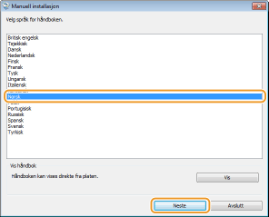 Velg språket og klikk på [Vis] i "Vis håndbok".