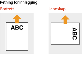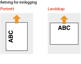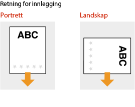 Når du bruker papir som er forhåndstrykt med en logo, må du ta hensyn til papirretningen når du legger det inn. Legg inn papiret på riktig måte, slik at utskriften utføres på riktig side av papiret med en logo.