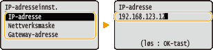 / for å gå til målfeltet (et inntastingsområde med skilletegn) og bruk de numeriske tastene til å øke/redusere verdien.Når du er usikker på hvilken IP-adresse du skal skrive inn