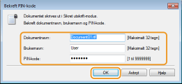 Skriv inn [Dokumentnavn], [Brukernavn], og [PIN-kode] og klikk på [OK].