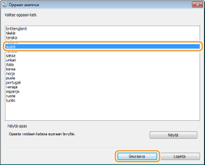 Asenna opas näytössä annettujen ohjeiden mukaisesti.