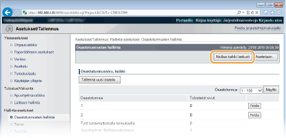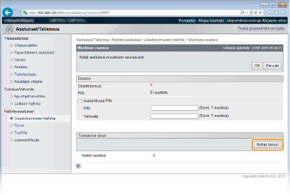 Tarkistuksen tuloksen tulostaminenSivulaskurin nollaaminenKun haluat nollata kunkin osaston sivumäärän, napsauta tekstilinkkiä kohdassa [Osastotunnus] ja napsauta [Nollaa laskuri]