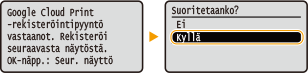 Laitteen rekisteröiminen Google Cloud Print -palveluun