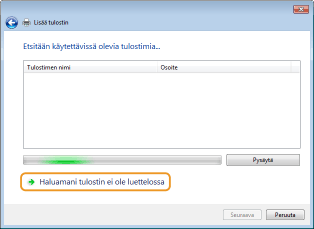 Napsauta [Haluamani tulostin ei ole luettelossa].