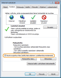 Jos [Käytä suojattua tilaa (edellyttää selaimen uudelleenkäynnistämisen)] -valintaruutu tyhjennettiin vaiheessa 7, valitse valintaruutu.