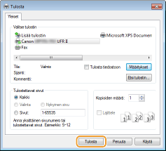 [Laitteet] [Tulosta] tämän laitteen tulostinajuri napauta tai napsauta [Tulosta].Jos tulostat tämän menetelmän avulla, käytettävissä on vain rajoitettu määrä tulostustoimintoja.