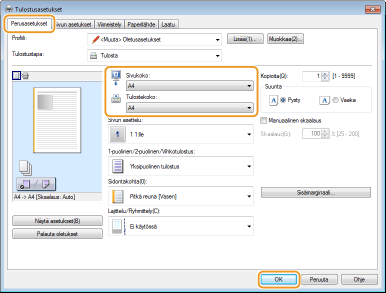 Valitse paperikoko kohdassa [Tulostekoko]