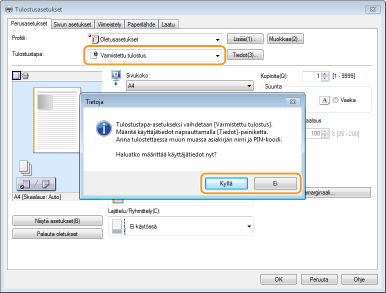 Valitse [Varmistettu tulostus] kohdassa [Tulostustapa].