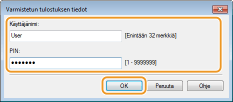 Syötä [Asiakirjan nimi], [Käyttäjänimi] ja [PIN] ja napsauta [OK].
