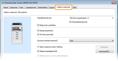Napsauta [Laitteen asetukset] -välilehteä ja määritä tarvittavat asetukset.