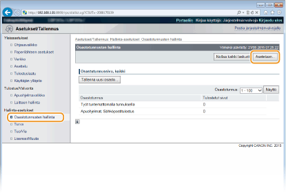 Valitse [Osastotunnusten hallinta] ja tallenna tai muokkaa osastotunnuksia.