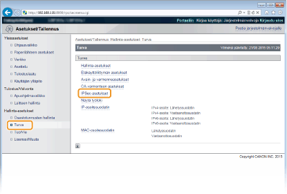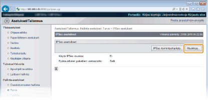 Käyttöpaneelin käyttäminenVoit ottaa IPSec-tiedonsiirron käyttöön tai pois käytöstä myös käyttöpaneelin asetusvalikosta. IPSec