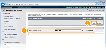 Syötä enintään 24 aakkosnumeerista merkkiä esijaetuksi avaimeksi ja napsauta [OK].