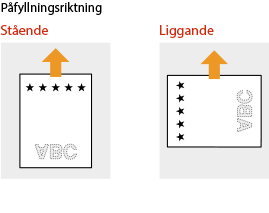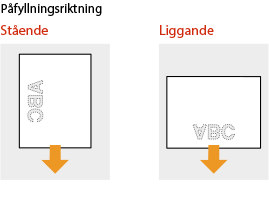 Om du använder papper med logotyp måste du kontrollera papperets orientering när du fyller på. Fyll på papper med logotyp så att utskriften sker på rätt sida.