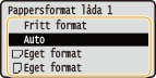 <Pappersformat låda 2> till <Pappersformat låda 5> visas endast när den extra pappersmataren eller det extra pappersmagasinet har installerats.
