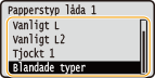 <Papperstyp låda 2> till <Papperstyp låda 5> visas endast när pappersmataren eller pappersmagasinet har installerats.