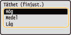 Välj <Täthet> och tryck på