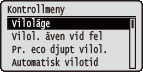Inställningar om viloläget och hur enheten ska fungera vid fel visas med korta beskrivningar. Standardinställningarna är markerade med ett kors (