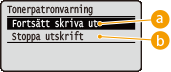 <Fortsätt skriva ut> eller <Stoppa utskrift>