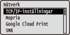 Om <Nätverk> inte visasOm <Nätverk> under <Gränssnittsval> anges till <Av> visas inte <Nätverk> på inställningsmenyn. Gränssnittsval