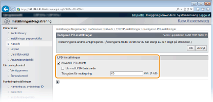 Markera kryssrutan när du skriver ut med LPD. När LPD-utskrift inte används avmarkerar du kryssrutan.
