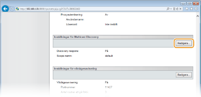 Klicka på [Redigera] i [Inställningar för Multicast Discovery].