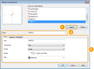 Visar en skärm där du kan skapa eller redigera vattenstämplar.