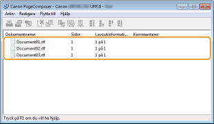 Om du använder Canon PageComposer kan du kombinera flera dokument till ett utskriftsjobb med angivna utskriftsinställningar. Med den här funktionen kan du kombinera dokument som skapats med olika program och skriva ut sidorna i samma pappersformat.