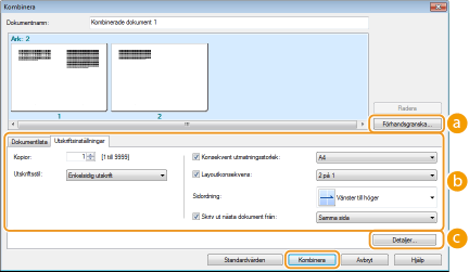 I listan [Dokumentnamn] väljer du det kombinerade utskriftsjobbet som ska skrivas ut och sedan klickar du på