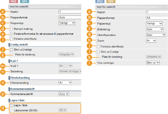När du anger utskriftsinställningar för XPS-filerAvmarkera kryssrutan [Prioritera Print Ticket]. Om kryssrutan är markerad kan vissa inställningar inte användas.