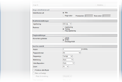 Välj att ange ett utskriftsintervall. Inställningen är inte tillgänglig för JPEG-filer.