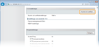 Klicka på [Nyckel och certifikat] i [TLS-inställningar].
