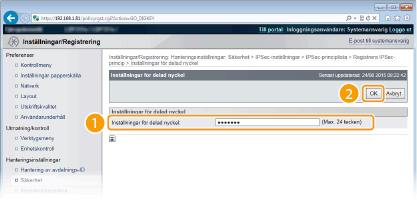 Ange upp till 24 alfanumeriska tecken för den på förhand delade nyckeln och klicka sedan på [OK].