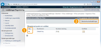 Välj nyckelparet som ska användas och klicka på [Standardnyckelinställningar].