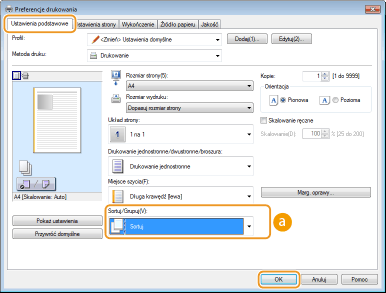 Jeśli wybrana zostanie opcja [Wył.], sortowanie wydruków będzie zależało od konfiguracji ustawień aplikacji.