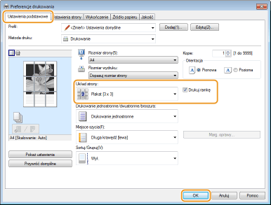 Wybierz opcję [Drukuj ramkę], aby dodać ramki do wydruków. Ramki są pomocne przy sklejaniu wydruków lub obcinaniu marginesów.