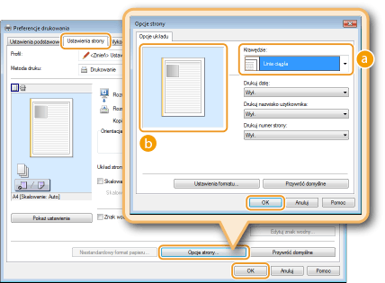 Wyświetlenie podglądu strony z wybranym obramowaniem.