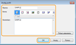 Wprowadź nazwę profilu w polu [Nazwa], wybierz ikonę, po czym kliknij przycisk [OK].