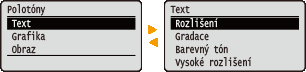 posouvat obrazovku nahoru a dolů. Při výběru této možnosti se vymění barva textu a pozadí položky.