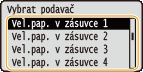 <Vel.pap. v zásuvce 2> až <Vel.pap. v zásuvce 5> se zobrazí pouze tehdy, je-li vložen volitelný podavač nebo držák papíru.