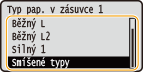 Vyberte jednu možnost z <Typ pap. v zásuvce 1> až <Typ pap. v zásuvce 5>, a stiskněte