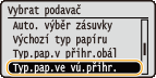 vyberte možnost <Vel.pap.ve vú.přihr.> a stiskněte tlačítko