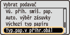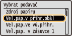 vyberte možnost <Vel.pap.v přihr.obál> a stiskněte tlačítko