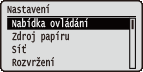 ), objeví se nabídka Nastavení a ukážou se nastavované položky pod každou položkou příslušné funkce.