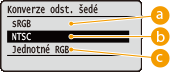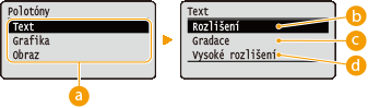 Všechna nastavení týkající se souborů PDF dostupných pro přímý tisk z USB a přímý tisk jsou uvedena s krátkým popisem. Výchozí nastavení jsou označena křížkem (