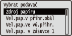 ( ), zobrazí se nabídka Vybrat podavač. Výchozí nastavení jsou označena křížkem ( ). |